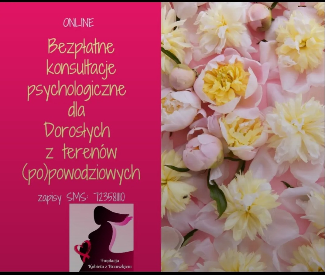 Witamy na stronie Fundacji "Kobieta z Brzuszkiem". Powstaliśmy specjalnie dla Ciebie. Zapraszamy do zapoznania się z celami naszej Fundacji oraz aktywne włączenie się w naszą działalność.Nasz statutOd początku do końca roku 2025 zostały przedłużone zapisy na bezpłatne konsultacje online osób z terenów (po)powodziowych. Prowadzone były bezpłatnie przez prezes dr Katarzynę Sanocką-Szulc - psychologa i psychoterapeutę w trakcie certyfikacji, zgłosiła się jedna osoba potrzebująca pomocy, z którą odbyło się 1 spotkanie online.